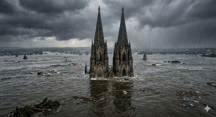 Kölner Dom unter Wasser - Bild mit Gemini generiert