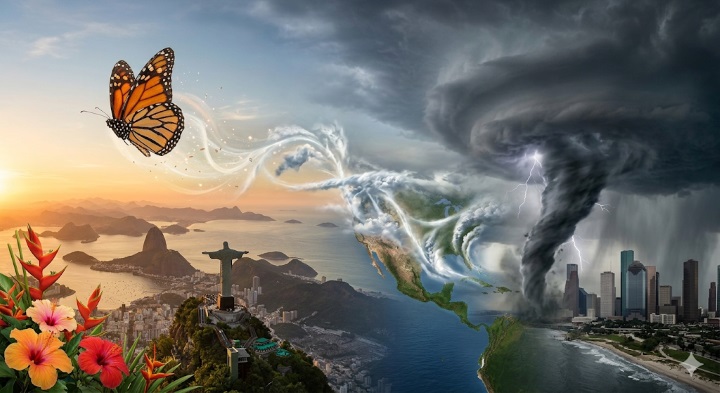 "Schmetterling in Rio de Janeiro löst einen Wirbelsturm in Houston aus" - Bild mit Gemini generiert